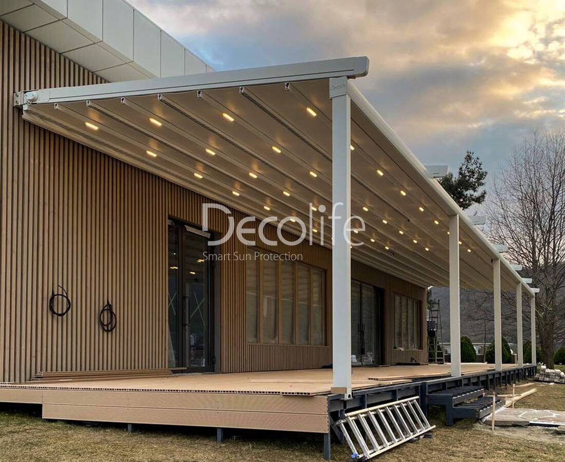 Пергола тентовая Decolife Project Light + Вертикальная система Zip 100 - реализовано партнером "ООО Люкс Террас" - г. Красногорск