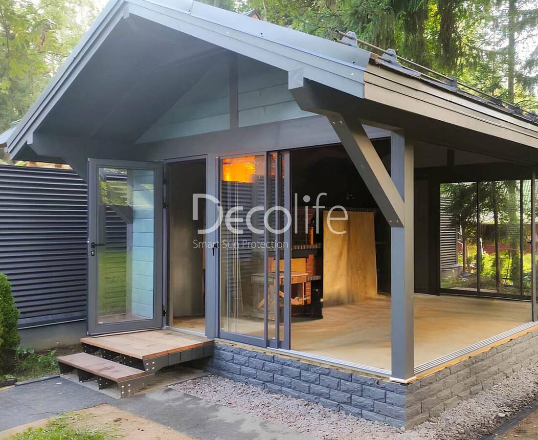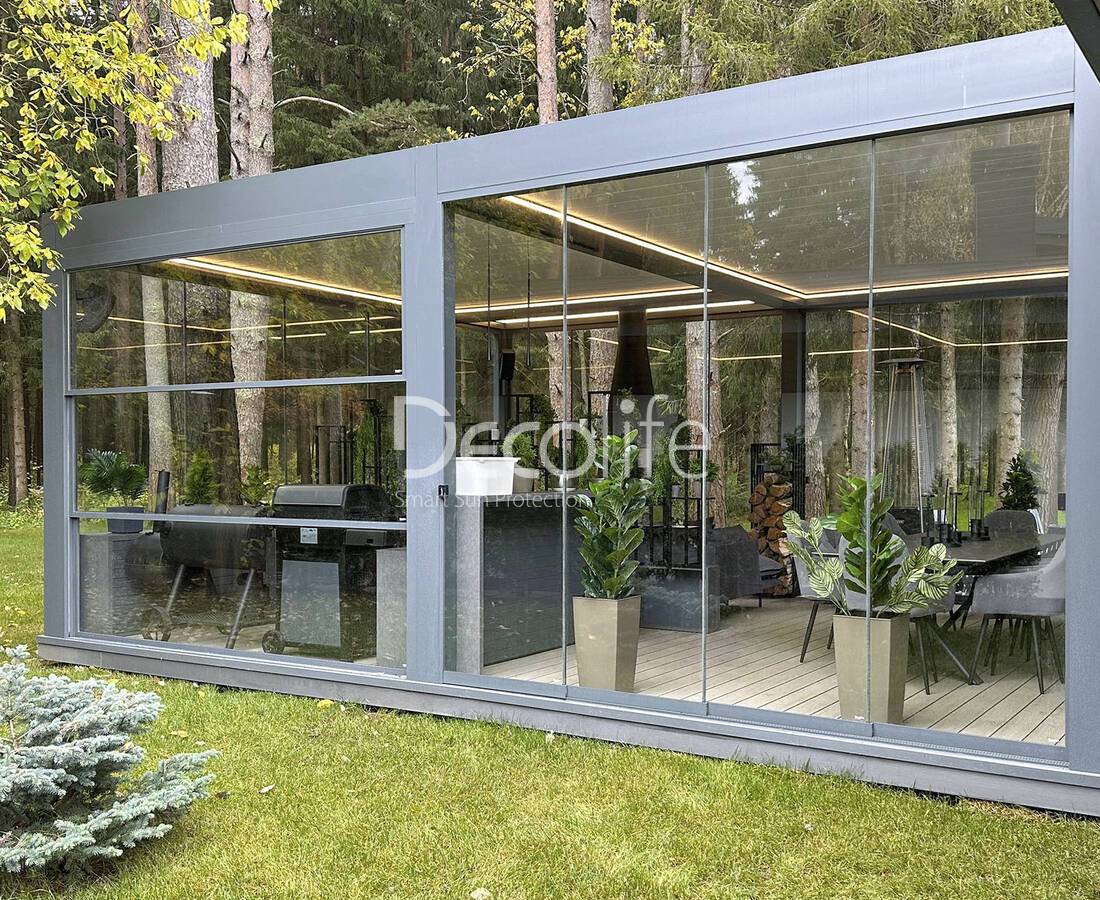 Пергола биоклиматическая Decolife B500-25П + Безрамное остекление S100 - Крым